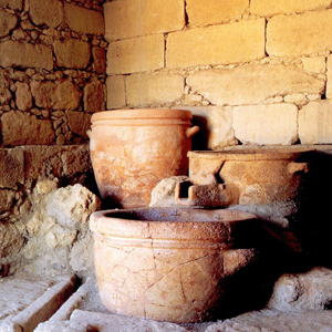 Πολύ σημαντικά είναι τα ευρήματα μεταξύ των οποίων ένα ελαιοπιεστήριο στη δυτική πλευρά, μεγάλα πιθάρια κι ένα μοναδικό στο είδος του “πατητήρι κρασιού” που διατηρείται ακόμα στη θέση του στην νότια πτέρυγα της αγροικίας.
